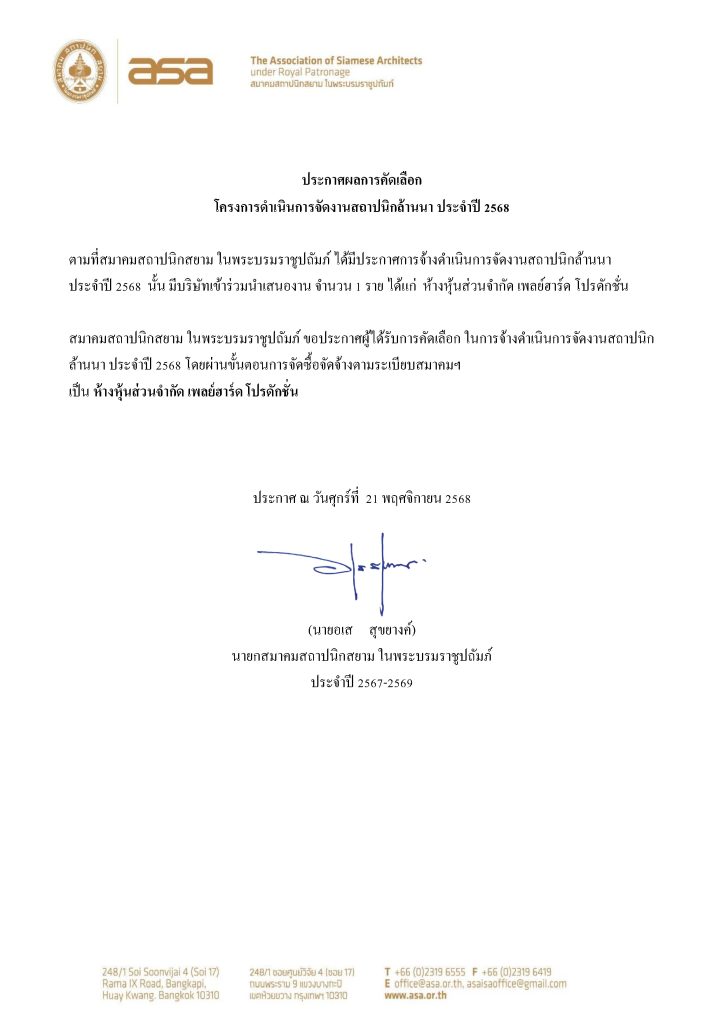 ประกาศผลการคัดเลือก โครงการดำเนินการจัดงานสถาปนิกล้านนา ประจำปี 2568