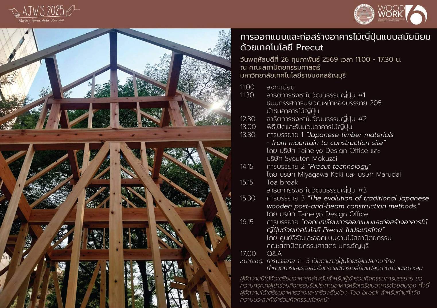ขอเชิญเข้าร่วมงาน การออกแบบและก่อสร้างอาคารไม้ญี่ปุ่นแบบสมัยนิยมด้วยเทคโนโลยี Precut