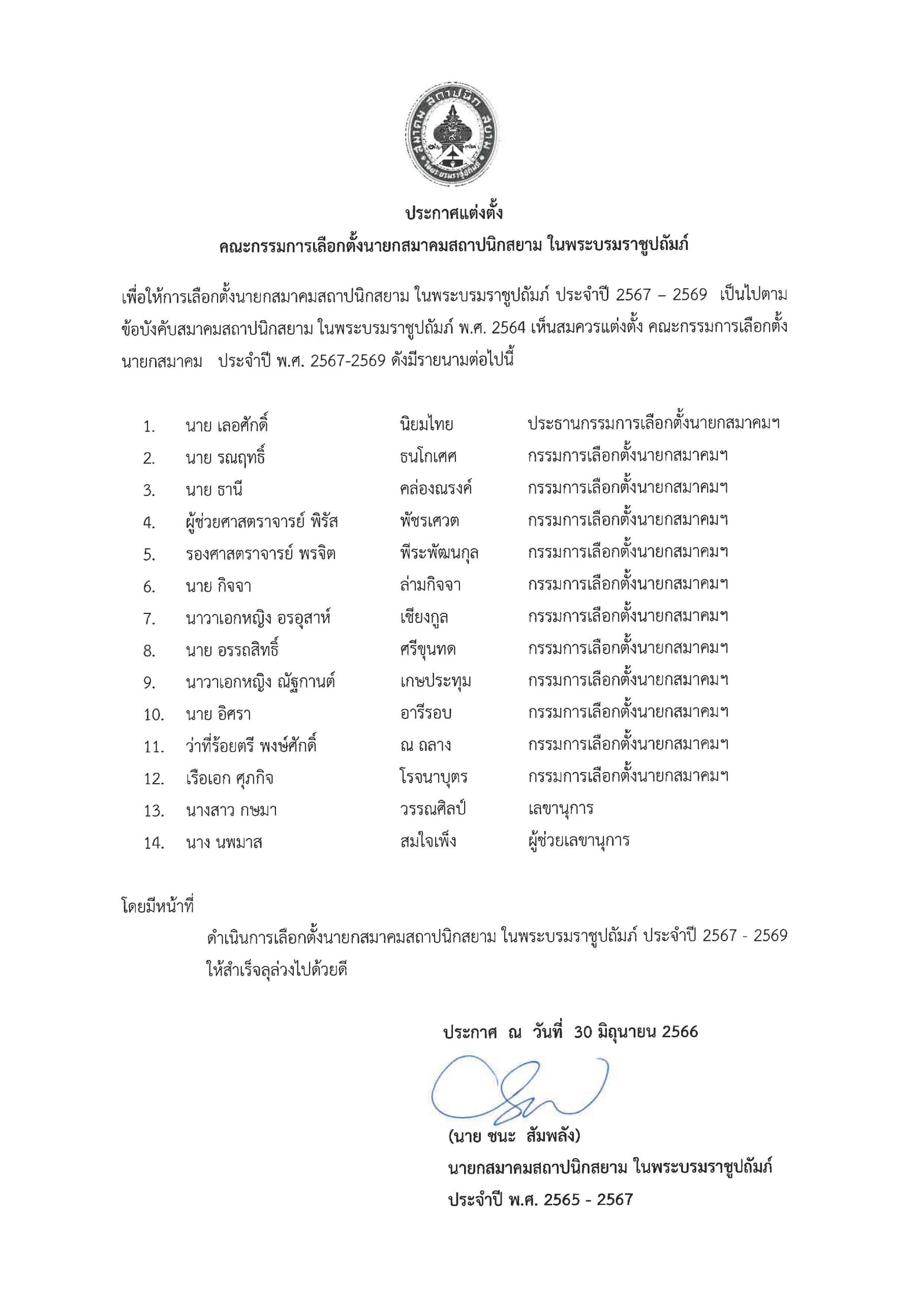 ประกาศแต่งตั้งคณะกรรมการเลือกตั้งนายกสมาคมสถาปนิกสยาม ในพระบรมราชูปถัมภ์ ปี 2567-2569