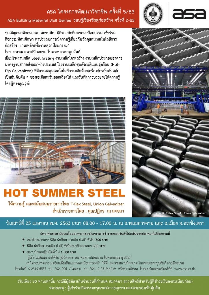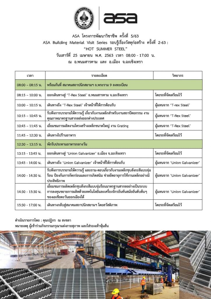 ด้วยสถานการณ์ไวรัส Covid 19 ยังไม่คลี่คลายไปในทิศทางที่ดี ขึ้น หลายฝ่ายยังมีความกังวลในการร่ วมทำกิจกรรมเป็นหมู่คณะ และทางคณะทำงานกิจกรรมสัมมนา ASA Material Info ได้พิจารณาร่วมกันแล้ว มีความเห็นว่าสมควรเลื่อนกิ จกรรมสัมมนา Hot Summer Steel ออกไปก่อน จึงใคร่เรียนทุกท่านให้ทราบว่ าทาง ASA จะขอเลื่อนกิจกรรมสัมมนาในวั นเสาร์ที่ 25 เม.ย. ออกไปก่อนอย่างไม่มีกำหนด เมื่อเหตุการณ์ต่าง ๆ ดีขึ้นจะได้พิจารณาเพื่อจัดกิ จกรรมทางวิชาการนี้อีกครั้ง ต้องขออภัยในความไม่สะดวกที่เกิ ดขึ้น และขอขอบคุณในความอนุเคราะห์มา ณ ที่นี้ครับ