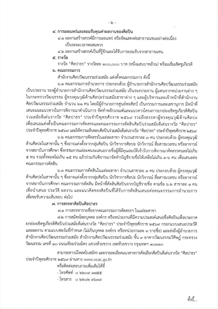 Home » News » โครงการยกย่อง เชิดชูเกียรติศิลปินร่วมสมัยดีเด่นรางวัล “ศิลปาธร” ประจำปีงบประมาณ พ.ศ.2569
