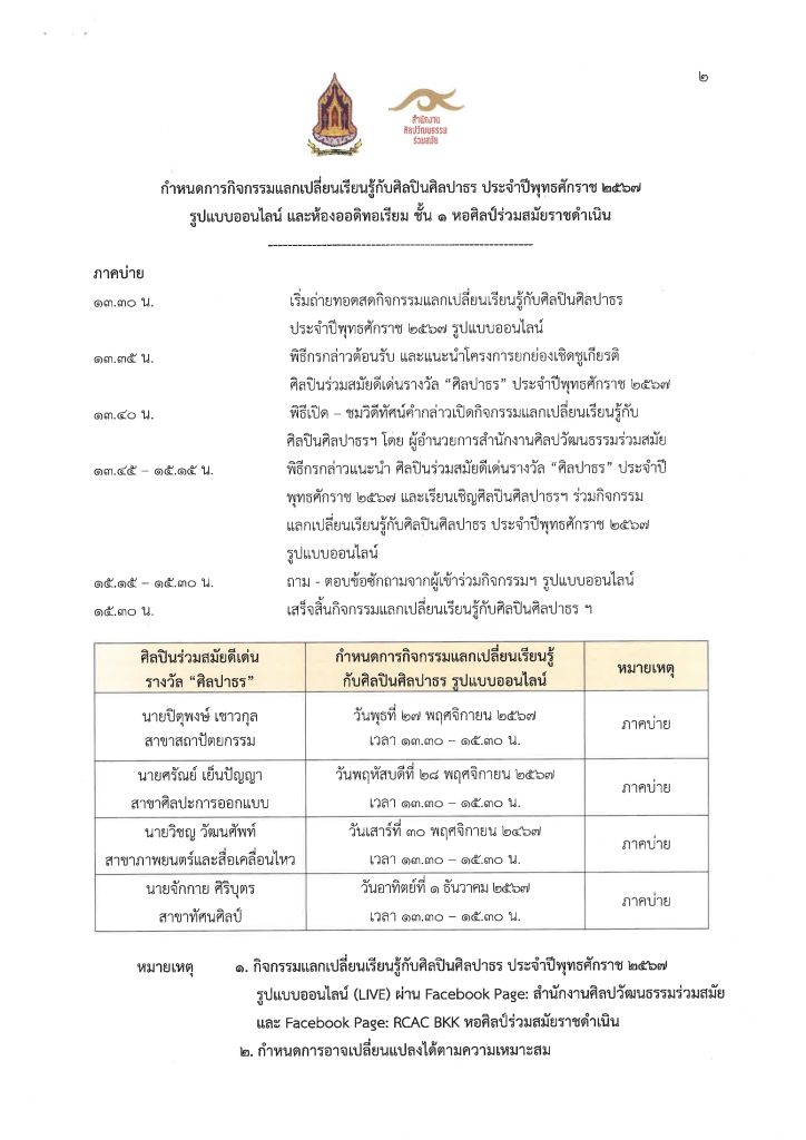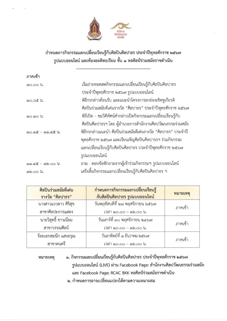 สำนักงานศิลปวัฒนธรรมร่วมสมัย และ RCAC BKK หอศิลป์ร่วมสมัยราชดำเนิน รูปแบบออนไลน์ ตั้งแต่วันที่ 27 พ.ย. – 1 ธ.ค. 2567