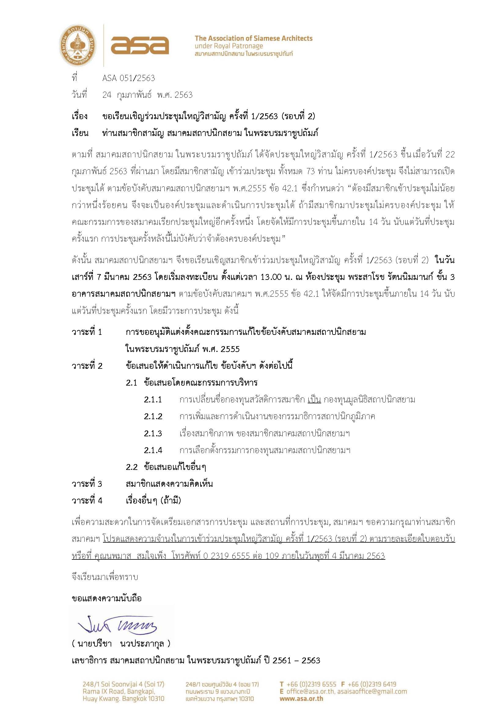 จดหมายเชิญประชุมใหญ่วิสามัญ ปี2563(รอบ2)_24กพ63