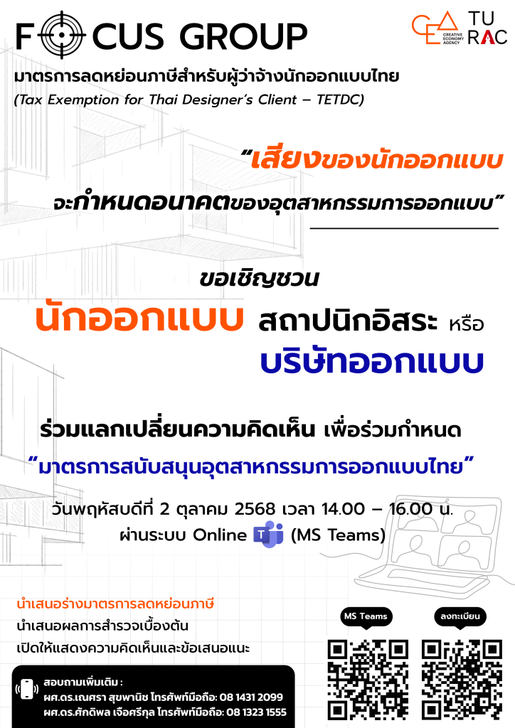 ร่วมแลกเปลี่ยนความคิดเห็นเพื่อร่วมกำหนด “มาตรการสนับสนุนอุตสาหกรรมการออกแบบไทย”