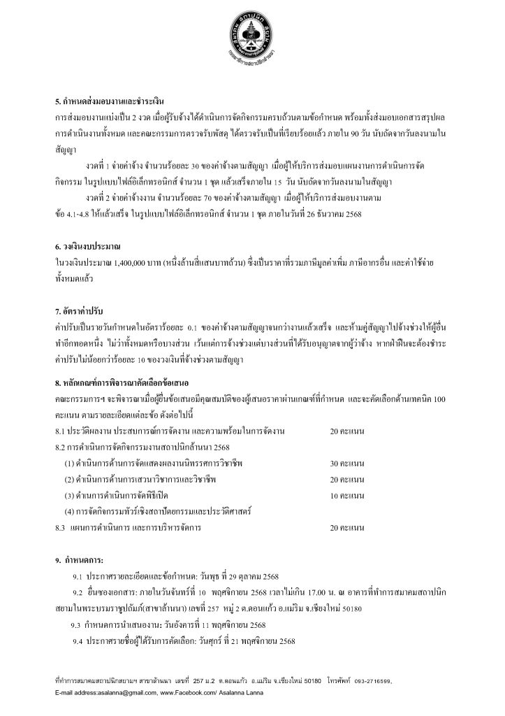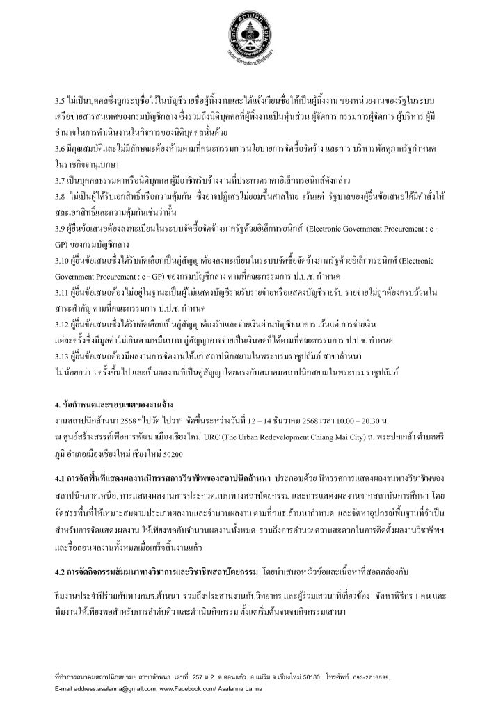 Home » News » ประกาศจัดจ้างดำเนินการจัดงานสถาปนิกล้านนา ประจำปี 2568