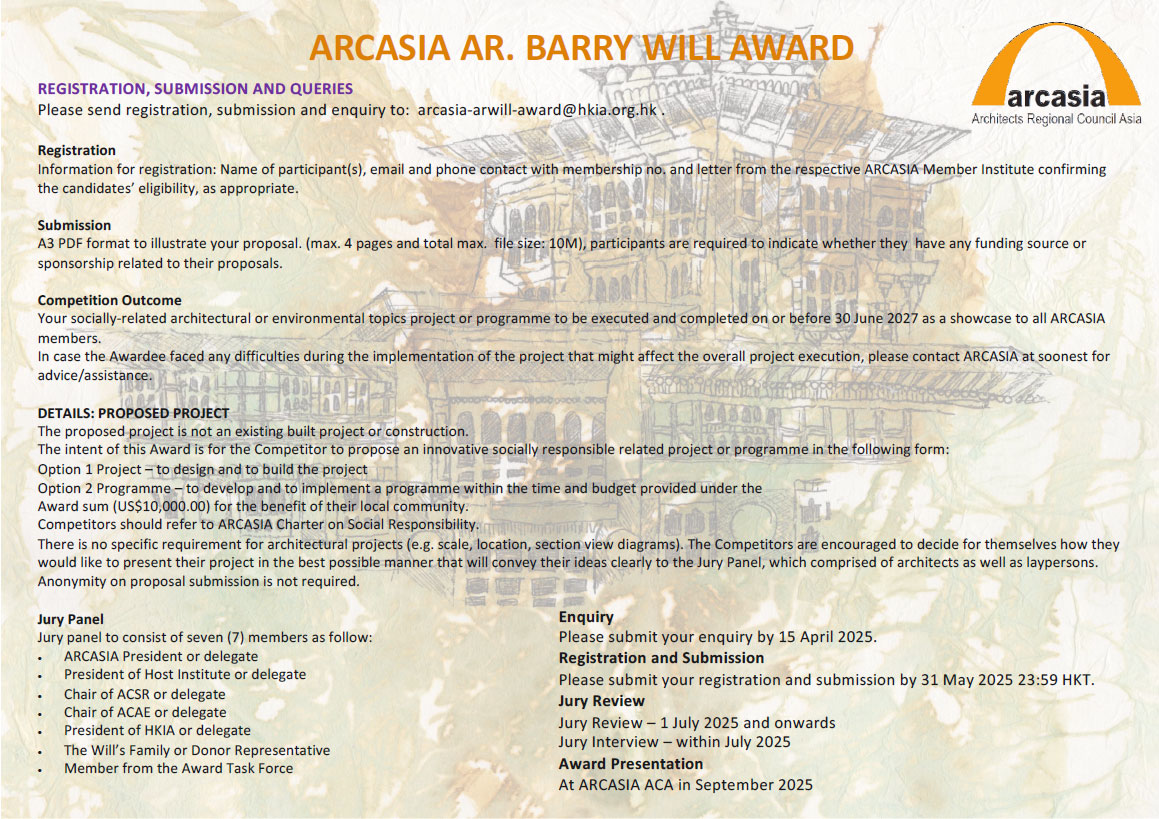 ARCASIA Ar. Barry Will Award 2025 (The 3rd cycle)