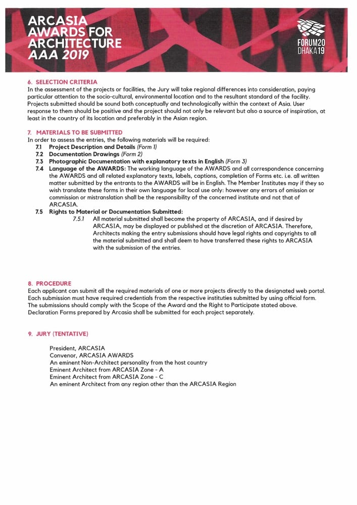 ARCASIA AWARDS FOR ARCHITECTURE AAA 2019