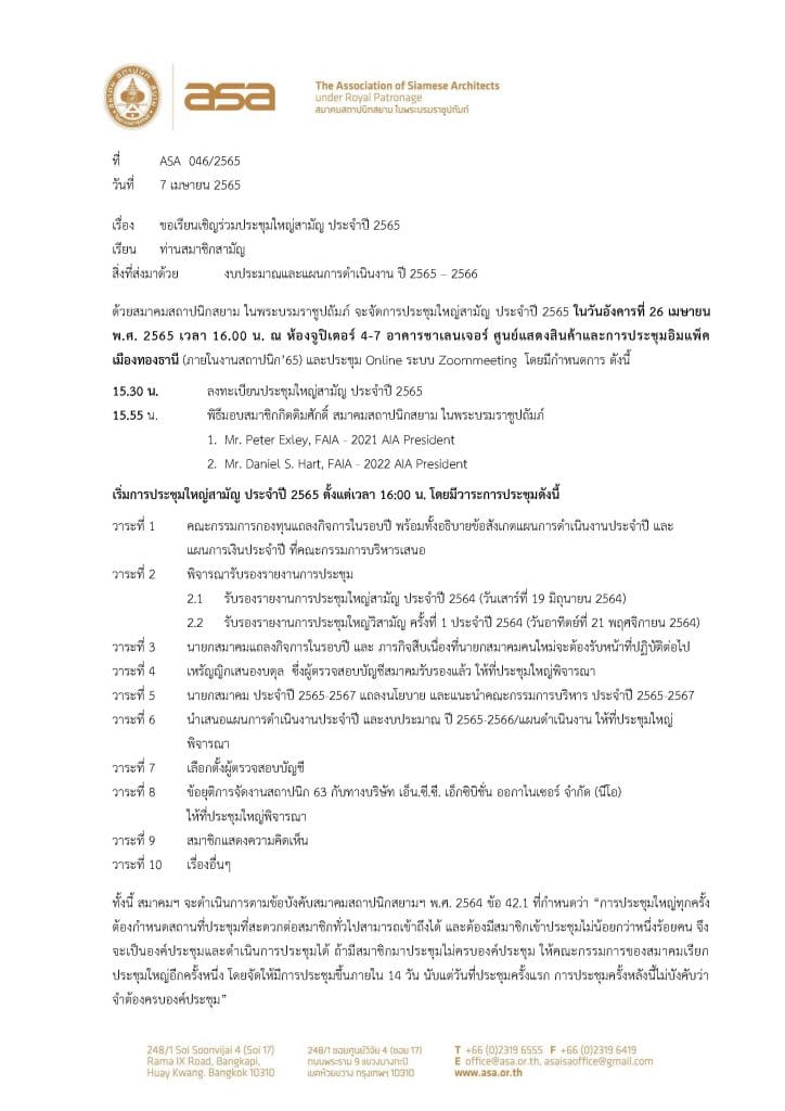 ประชุมใหญ่สามัญ ประจำปี 2565