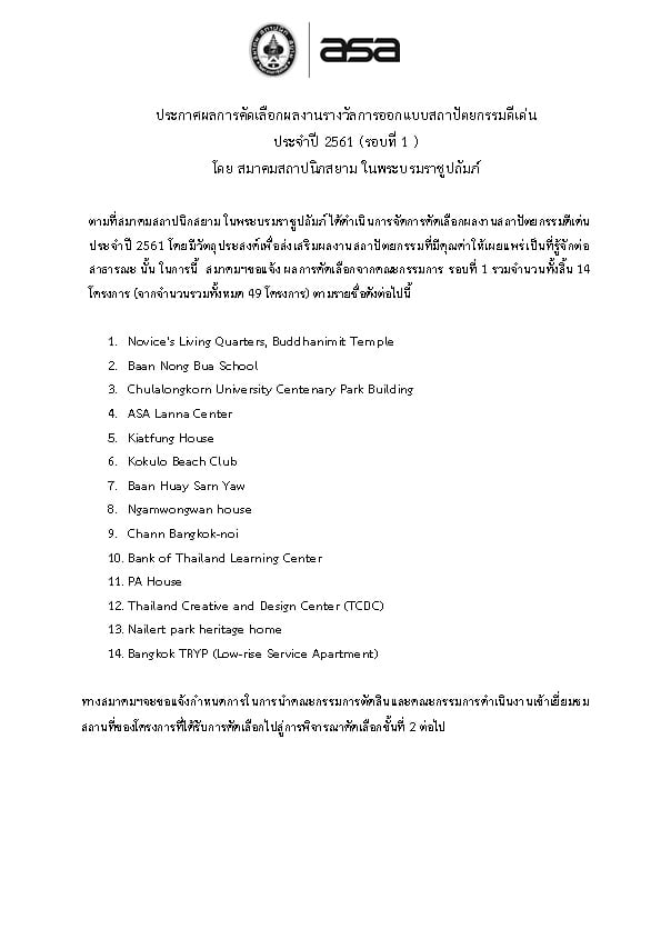 ประกาศผลการคัดเลือกผลงานรางวัลการออกแบบ