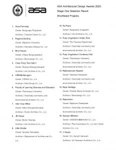 2020 ASA ARCHITECTURAL DESIGN AWARDS SELECTION RESULT