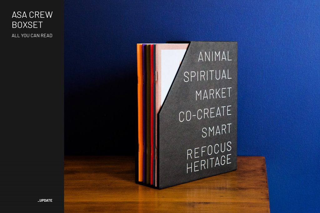 กองบรรณาธิการได้ร่วมกันออกแบบให้ทุกเล่มมีสีสันเฉพาะตัวที่สวยงาม ภาพประกอบเต็มตา ควรค่าแก่การสะสม พิมพ์จำนวนจำกัด สำหรับผู้ที่สั่งจองเท่านั้น ราคา ASA ACREW Boxset สำหรับบุคคลทั่วไป 1,500 บาท สมาชิกสมาคมฯ 1,350 บาท