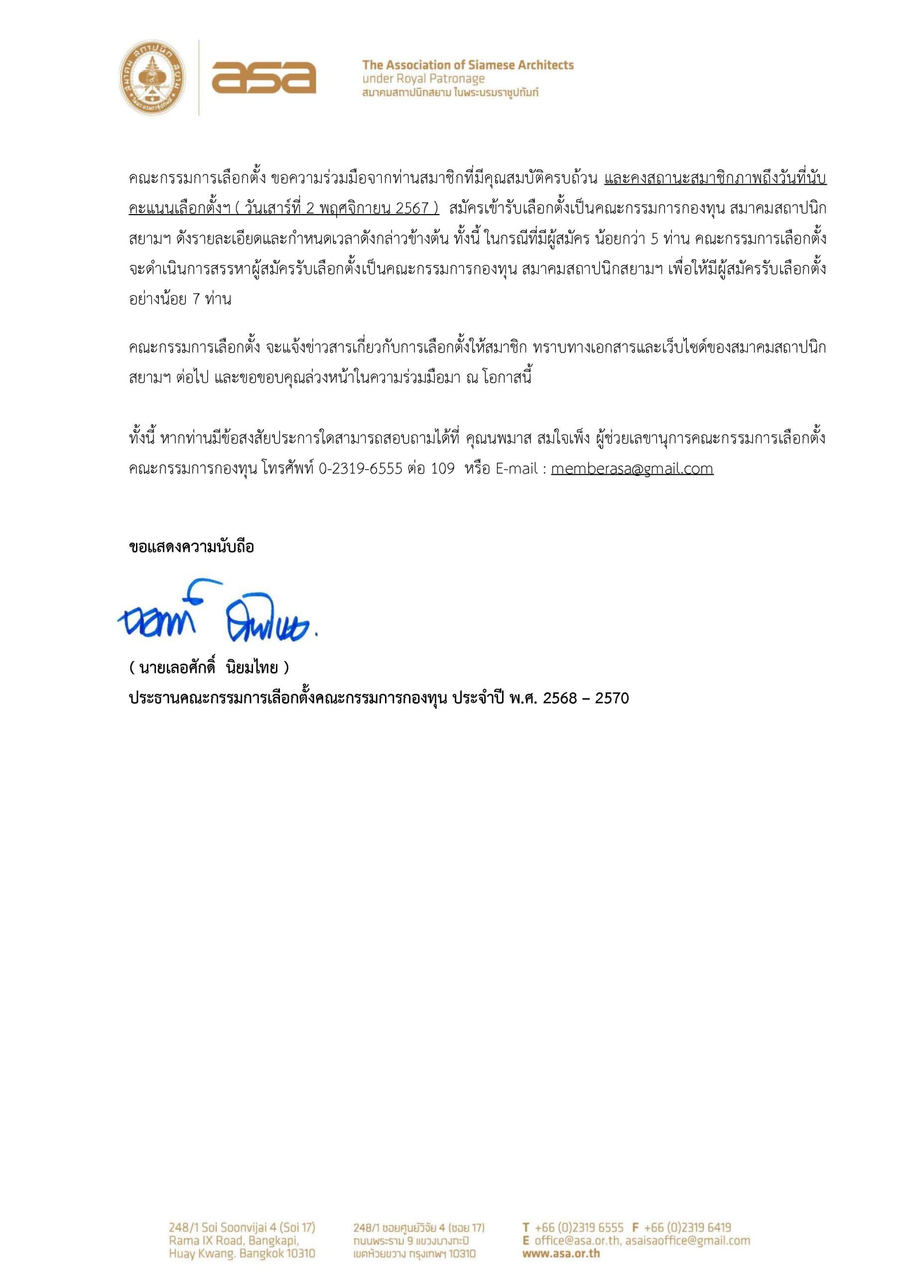 ขอเชิญสมัครรับเลือกตั้งเป็นคณะกรรมการกองทุน สมาคมสถาปนิกสยาม ในพระบรมราชูปถัมภ์ ประจำปี 2568-2570