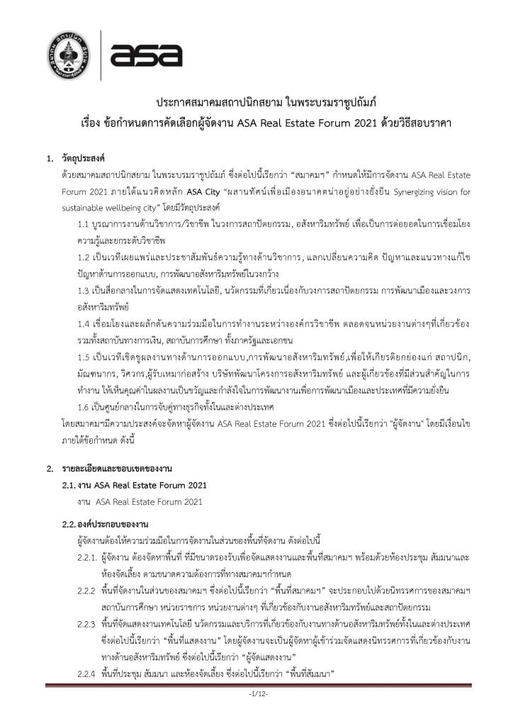 Home » News » ประกาศ จัดหาผู้จัดงาน ASA Real Estate Forum 2021 ด้วยวิธีสอบราคา