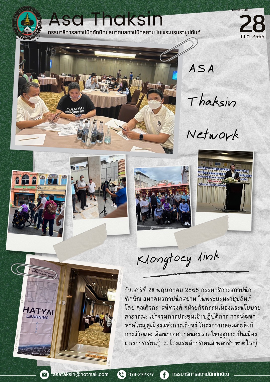 ร่วมการประชุมเชิงปฏิบัติการ การพัฒนาหาดใหญ่สู่เมืองแห่งการเรียนรู้ โครงการคลองเตยลิงก์ : การวิจัยและพัฒนาเทศบาลนครหาดใหญ่สู่การเป็นเมืองแห่งการเรียนรู้