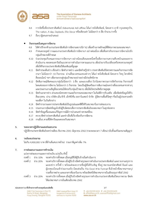ประกาศจัดจ้างที่ปรึกษาการสร้างกลยุทธ์และผลิตสื่อประชาสัมพันธ์ นิทรรศการและกิจกรรมสมาคมฯ งานสถาปนิก’62