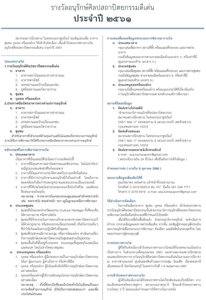 Home » News » รางวัลอนุรักษ์ศิลปสถาปัตยกรรมดีเด่น ประจำปี 2561