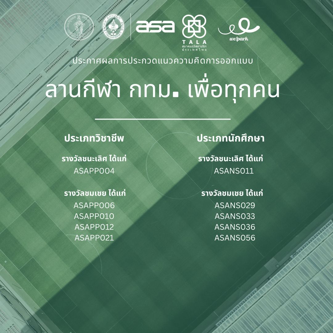 ประกาศผลประกวดแบบแนวความคิด ลานกีฬา กทม. เพื่อทุกคน