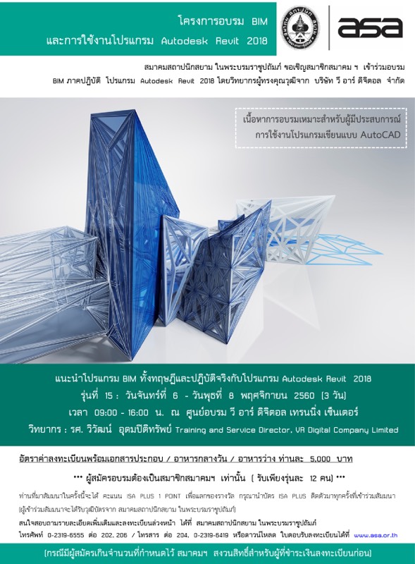 6-8 พ.ย.60 | โครงการอบรม BIM และการใช้งานโปรแกรม Autodesk Revit 2018 (ปิดรับลงทะเบียน)