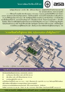 28 เม.ย. 61 | โครงการพัฒนาวิชาชีพ ครั้งที่ 6/61 “การเตรียมตัวเข้าสู่ระบบ BIM, Information สำคัญไฉน????”