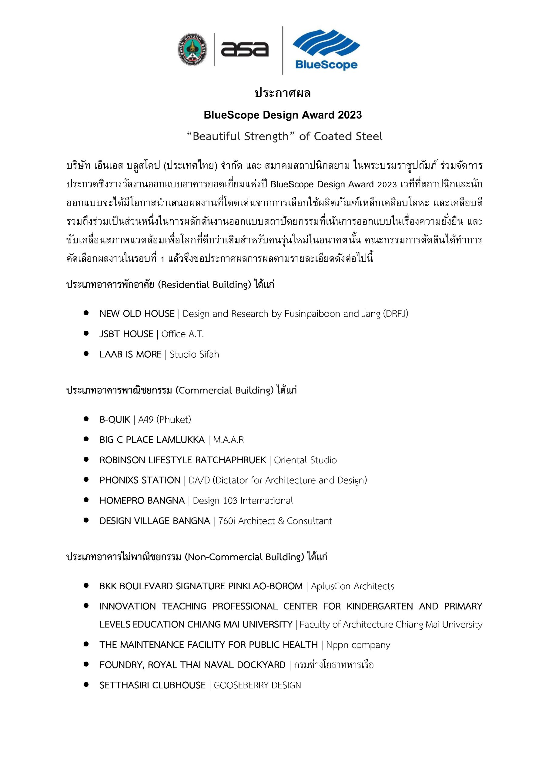 ประกาศผล BlueScope Design Award 2023