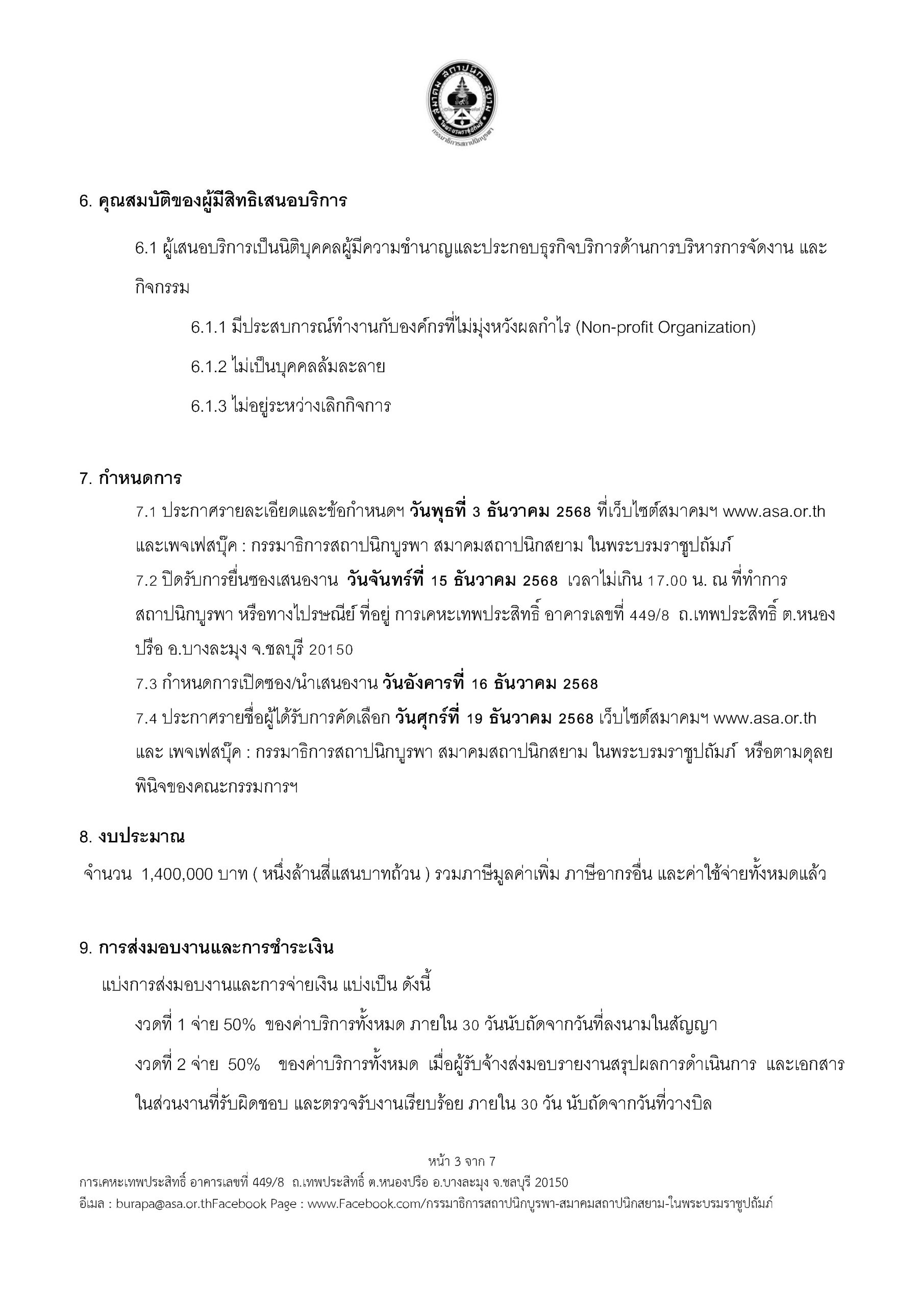 ประกาศ ข้อกำหนดขอบเขตของงานจ้างดำเนินงาน (TOR ) โครงการจ้างเหมาจัดทำนิทรรศการและงานอำนวยการประสานงานสถาปนิกบูรพา’68