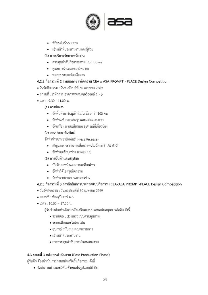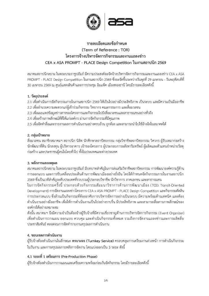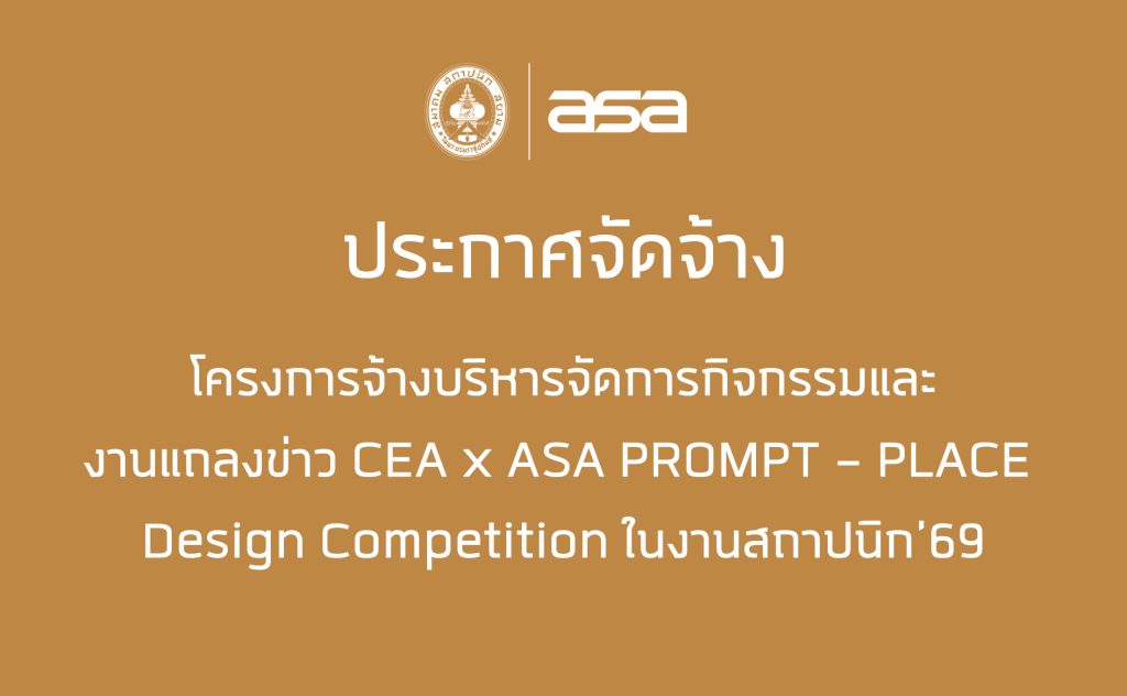 Home » News » ประกาศจัดจ้าง โครงการจ้างบริหารจัดการกิจกรรมและ งานแถลงข่าว CEA x ASA PROMPT – PLACE Design Competition ในงานสถาปนิก’69