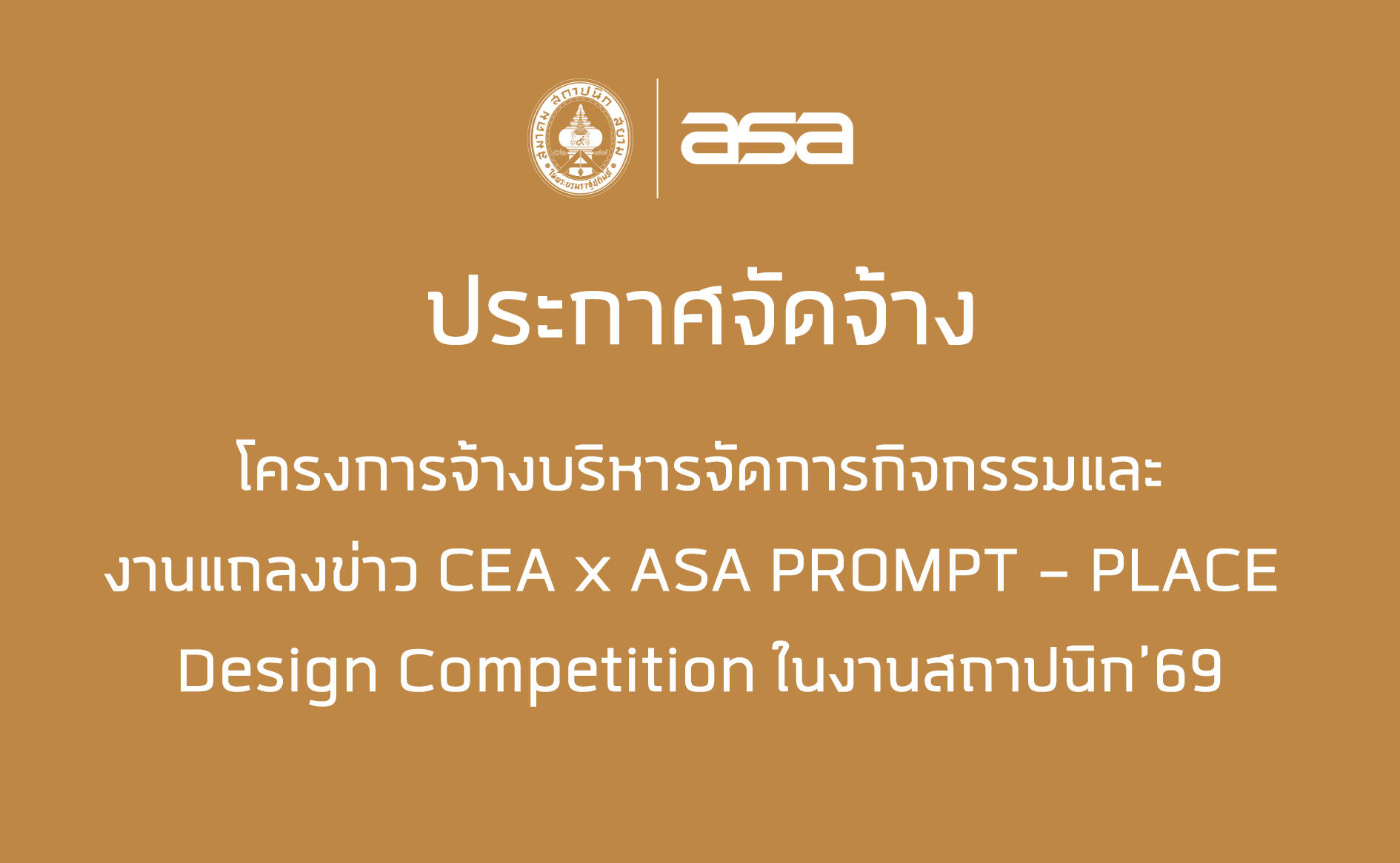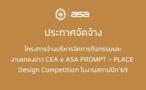 ประกาศจัดจ้าง โครงการจ้างบริหารจัดการกิจกรรมและ งานแถลงข่าว CEA x ASA PROMPT – PLACE Design Competition ในงานสถาปนิก’69