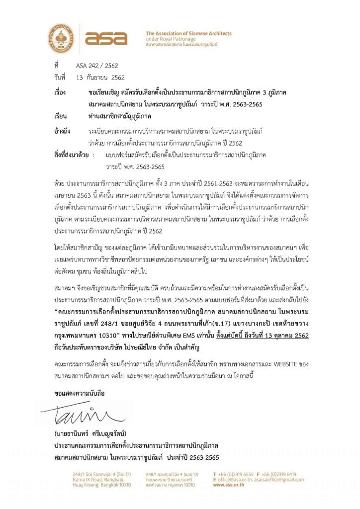 Home » News » ขอเรียนเชิญสมัครรับเลือกตั้งเป็นประธานกรรมาธิการสถาปนิก 3 ภูมิภาค สมาคมสถาปนิกสยาม ในพระบรมราชูปถัมภ์ วาระปี พ.ศ. 2563-2565