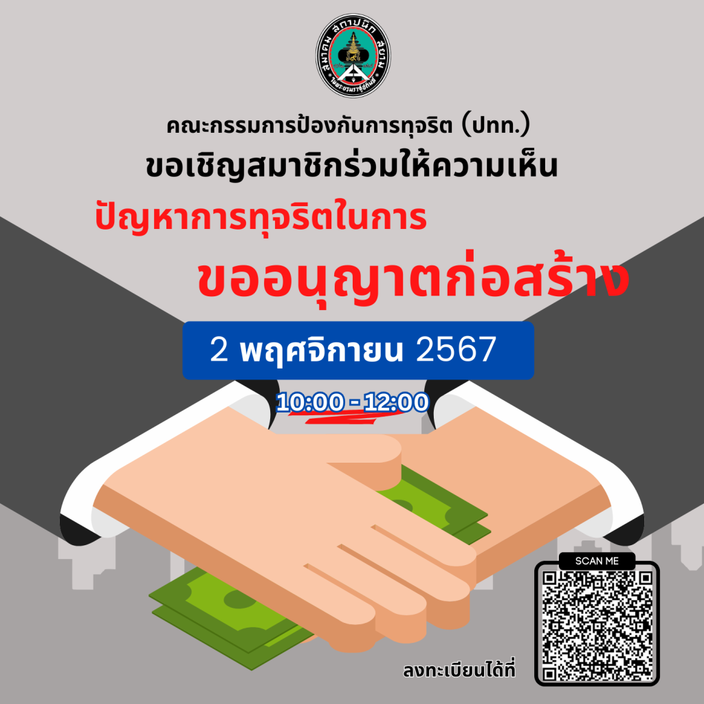 ด้วย คณะกรรมการป้องกันการทุจริต จาก เจ้าหน้าที่ของรัฐ ปทท. ได้ตั้งคณะอนุกรรมการ มาศึกษา และแก้ไข ปัญหา อุปสรรค ในการขออนุญาต ก่อสร้าง หรือควบคุม อันเกิดจาก การพิจารณาของเจ้าหน้าที่ ทีนำไปสู่การเรียกรับผลประโยชน์โดยมิชอบ(คอรับชั่น) คณะอนุกรรมการได้จัดทำการสืบสวน สอบข้อเท็จจริง โดยการขอพบปะพูดคุย กับสมาชิกสมาคมสถาปนิกฯ เพื่อนำไปกำหนดแนวทางและแก้ไขวิธีการและกระบวนการจากการใช้อำนาจรัฐ