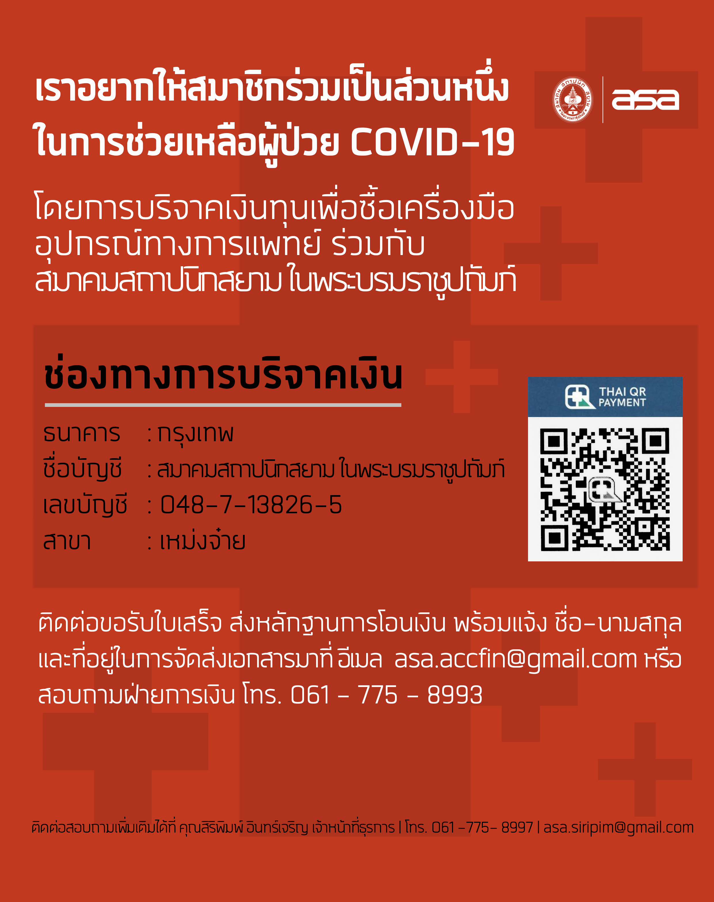 สมาคมสถาปนิกสยามฯ ขอเชิญร่วมบริจาคเงินทุนช่วยเหลือผู้ป่วย COVID-19