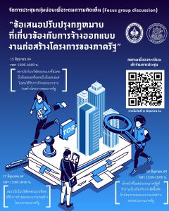 ขอเชิญเข้าร่วมประชุมระดมความคิด “ข้อเสนอปรับปรุงกฎหมายที่เกี่ยวข้องกับการจ้างออกแบบงานก่อสร้างโครงการของภาครัฐ”