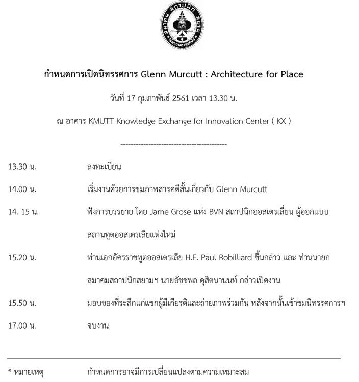กำหนดการวันเปิดนิทรรศการ Glenn Murcutt