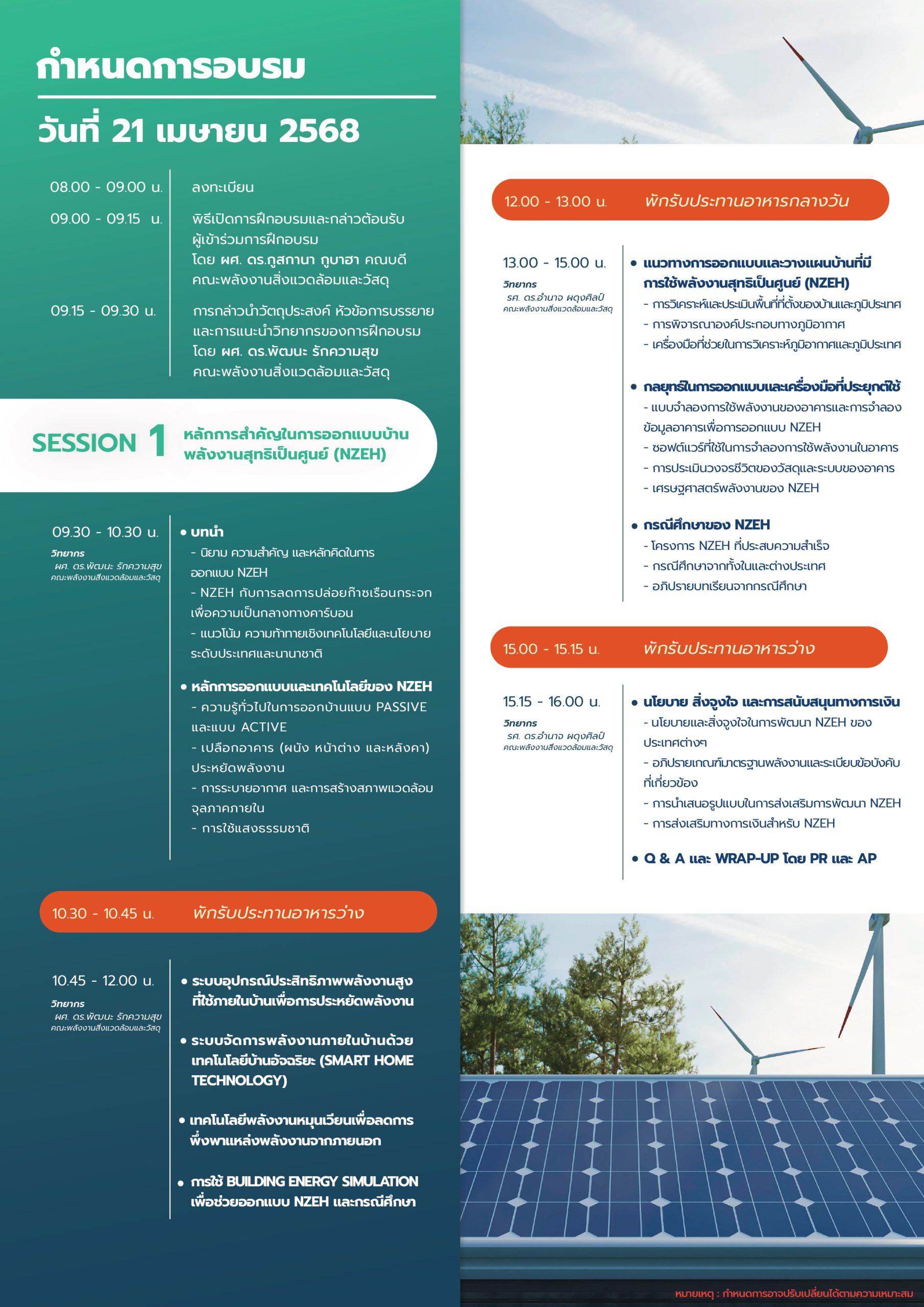 เชิญเข้าร่วมฝึกอบรมเชิงปฏิบัติการ เรื่อง “ระบบผลิตไฟฟ้าแบบผสมผสานเพื่อบ้านที่อยู่อาศัยพลังงานสุทธิเป็นศูนย์ (Hybrid PV System for Net Zero Energy House)”