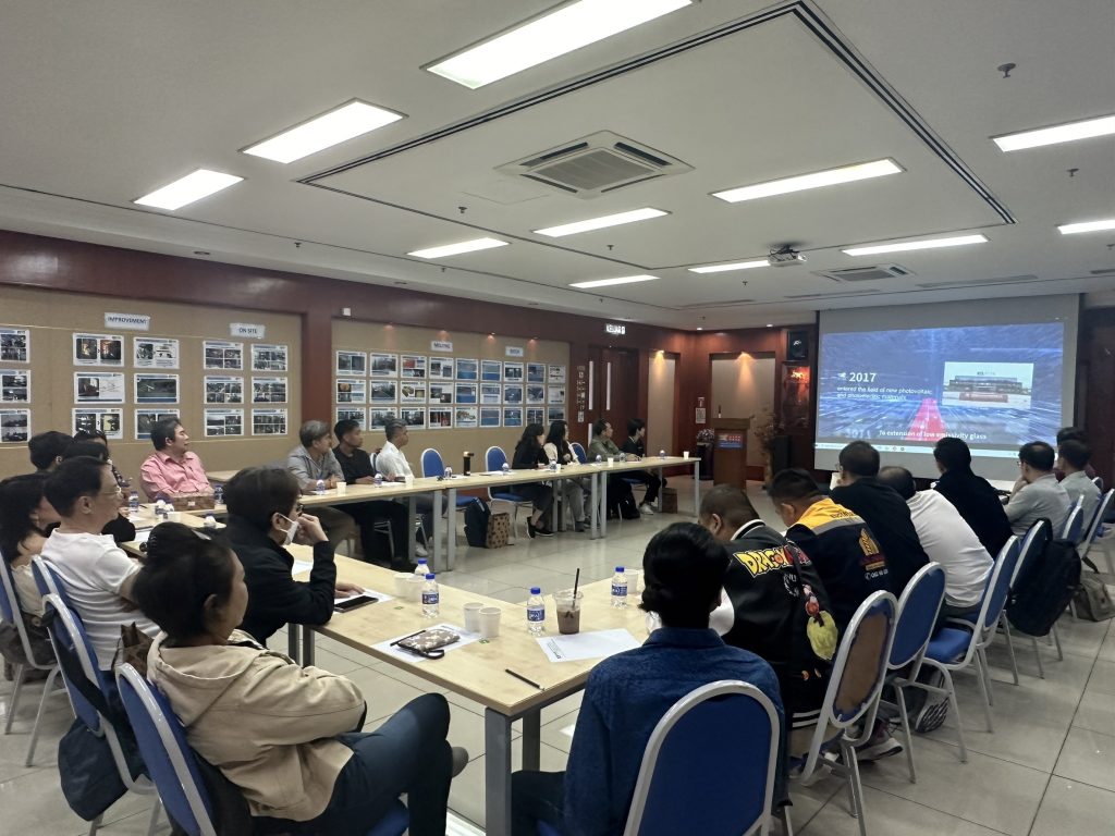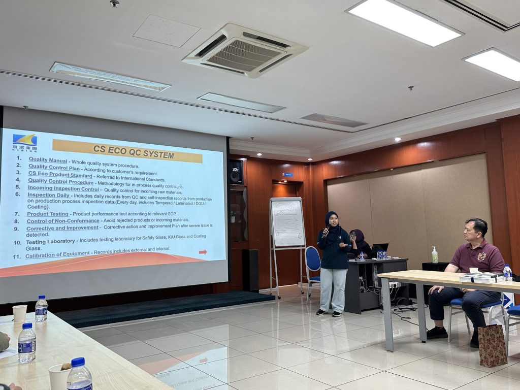 วันที่ 13 ธันวาคม 2567 กิจกรรมวันที่2 ออกเดินทางจากที่พักไปเยี่ยมโรงงานKlibing Float Glass เป็นโรงงานผลิตกระจก Float Glass เป็น raw glass ส่งให้กับโรงงาน Cs Eco Glass เพื่อผลิตกระจกแปรรูป โดยแปรรูปไปเป็น Heat Treated Glass , Laminated Glass , Insulated Glass , Coated Glass ( Solar & Low-E)