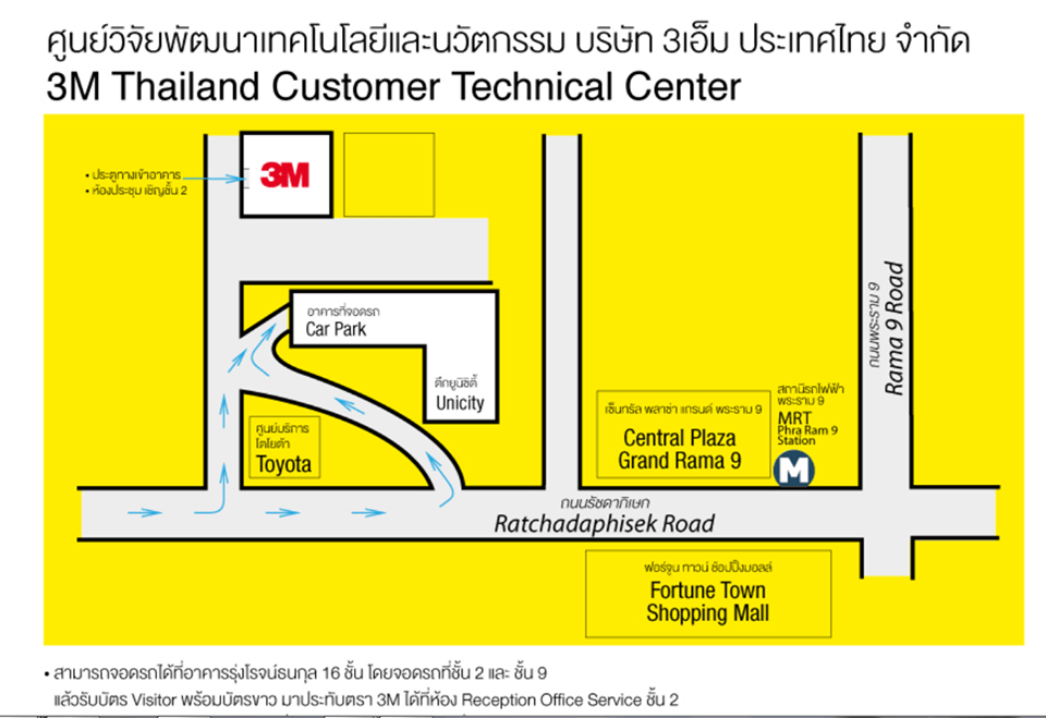 แผนที่การเดินทาง ไปยัง ศูนย์วิจัยพัฒนาเทคโนโลยีและนวัตกรรม 3 เอ็ม ประเทศไทย อาคารรุ่งโรจน์ธนกุล (ข้างเซ็นทรัลพระราม 9)