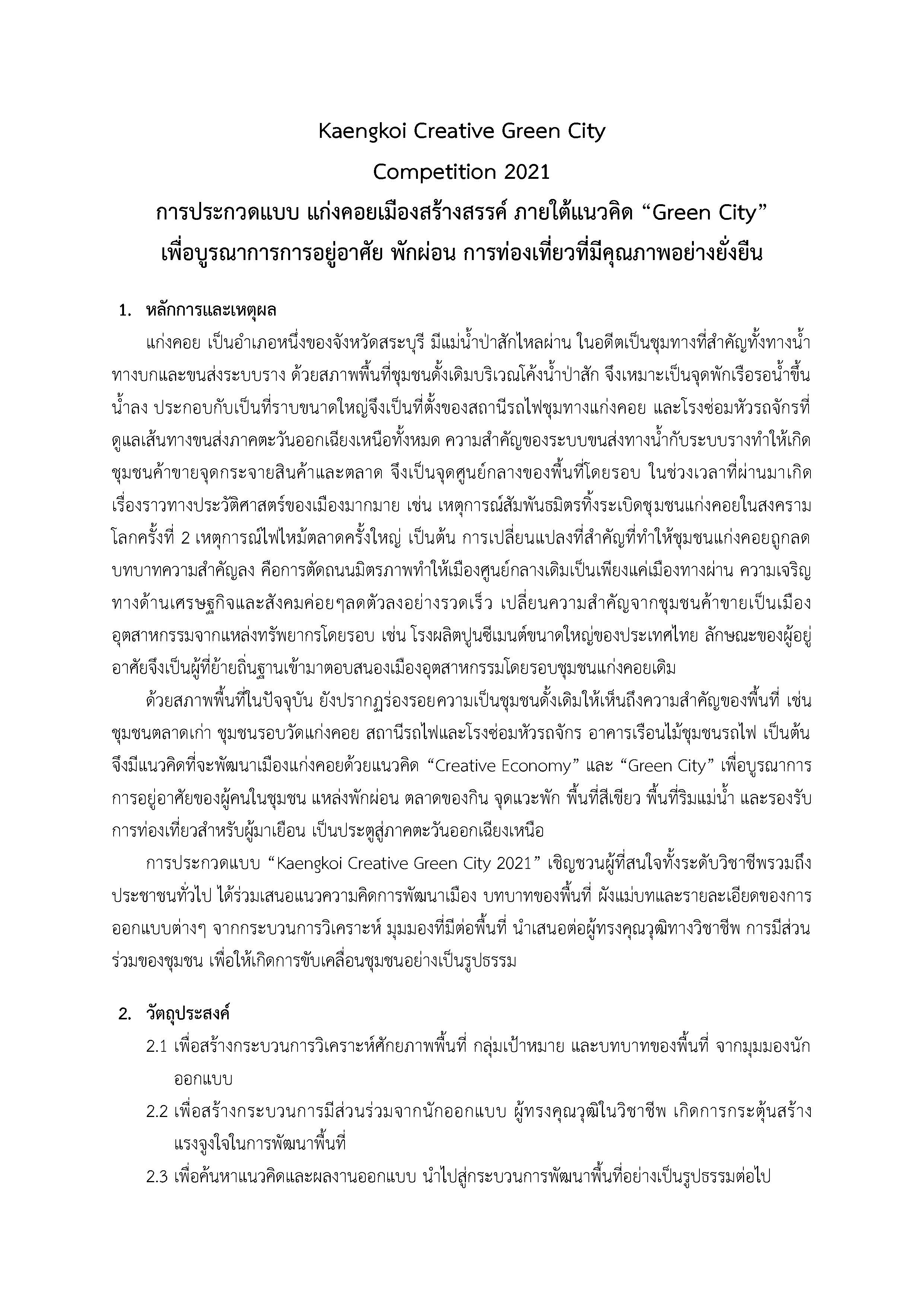 แจ้งเลื่อนกำหนดการ โครงการประกวดแบบ แก่งคอยเมืองสร้างสรรค์ “Green City”