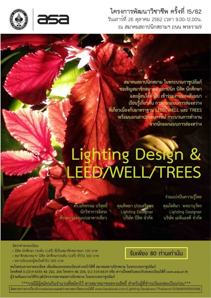Home » News » 26 ต.ค.62 | โครงการพัฒนาวิชาชีพ ครั้งที่ 15/62 “Lighting Design & LEED/WELL/TREES”