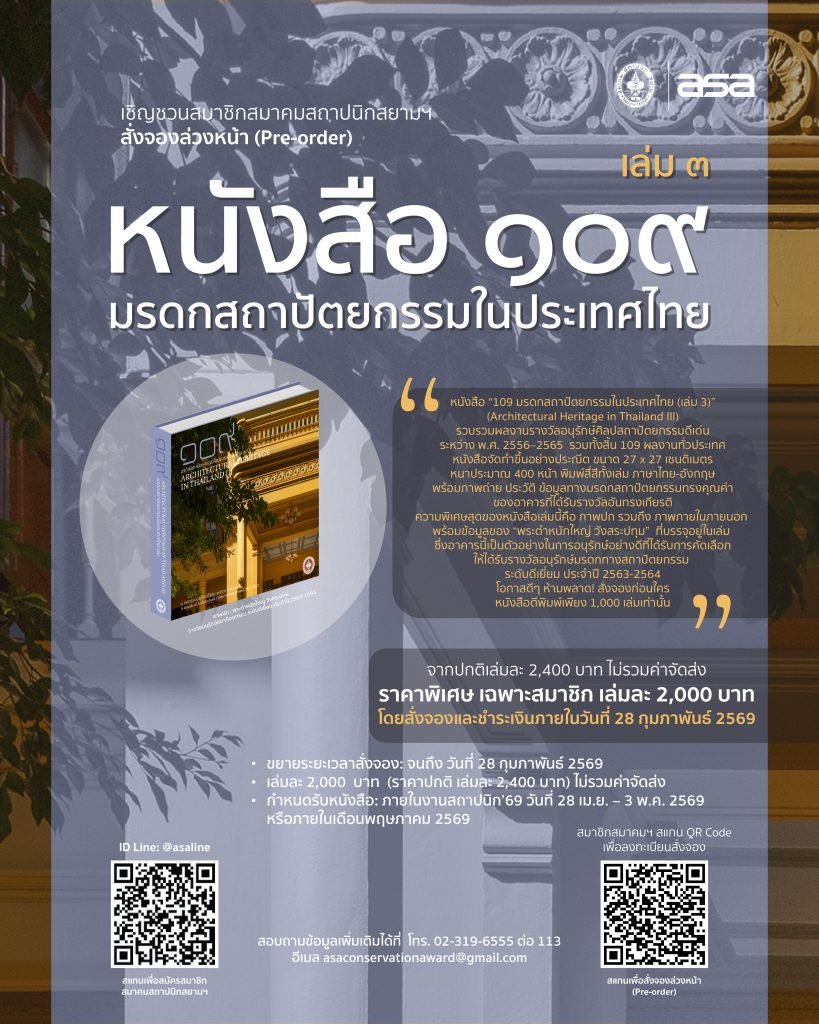 เชิญชวนสมาชิกสมาคมสถาปนิกสยามฯ สั่งจอง หนังสือ “๑๐๙ มรดกสถาปัตยกรรมในประเทศไทย เล่ม 3”