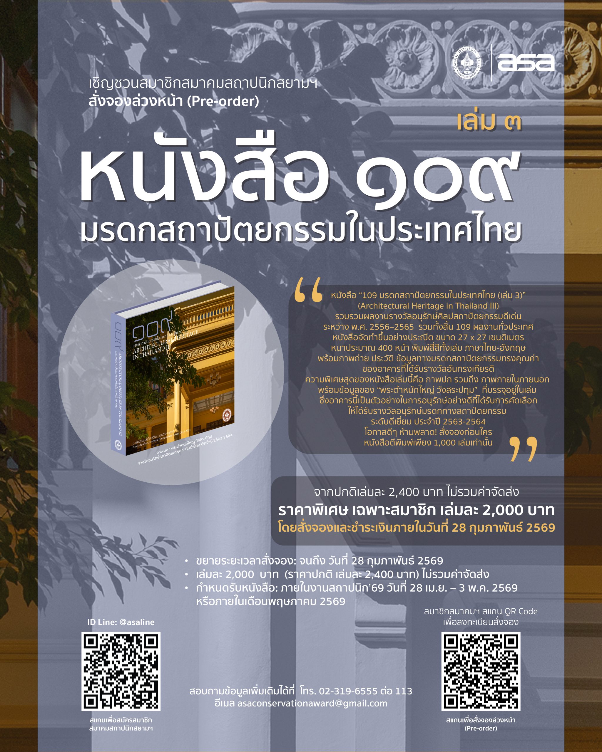 ขยายเวลาสั่งจองหนังสือ 109 มรดกสถาปัตยกรรมในประเทศไทย
