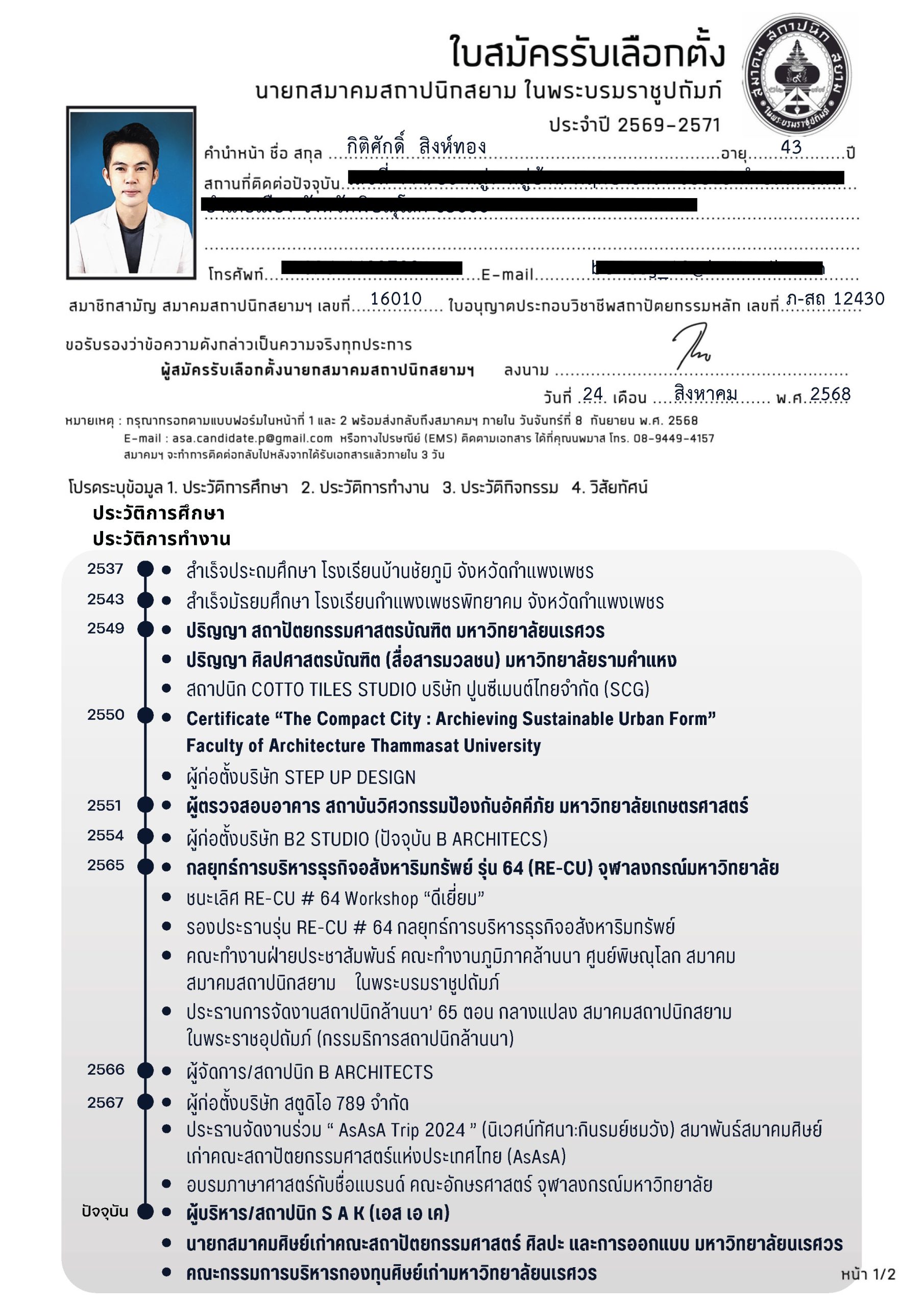 ขอเชิญลงคะแนนเลือกตั้งนายกสมาคมสถาปนิกสยาม ในพระบรมราชูปถัมภ์ ประจำปี พ.ศ. 2569 – 2571