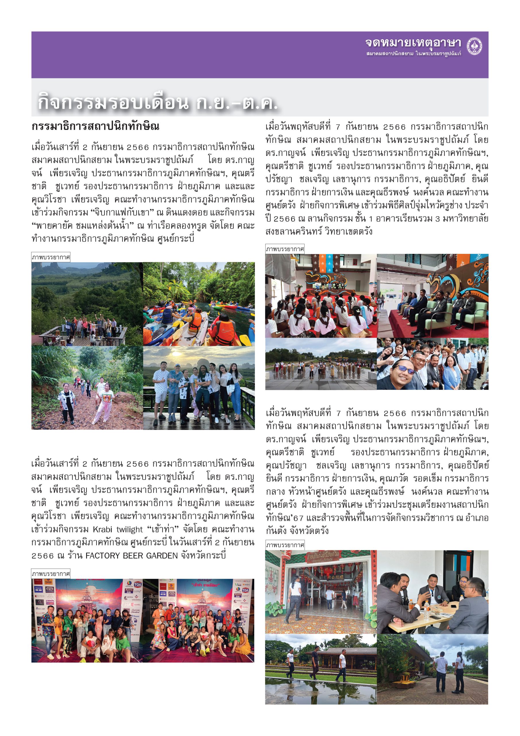 กิจกรรมรอบเดือน ก.ย. – ต.ค. 66