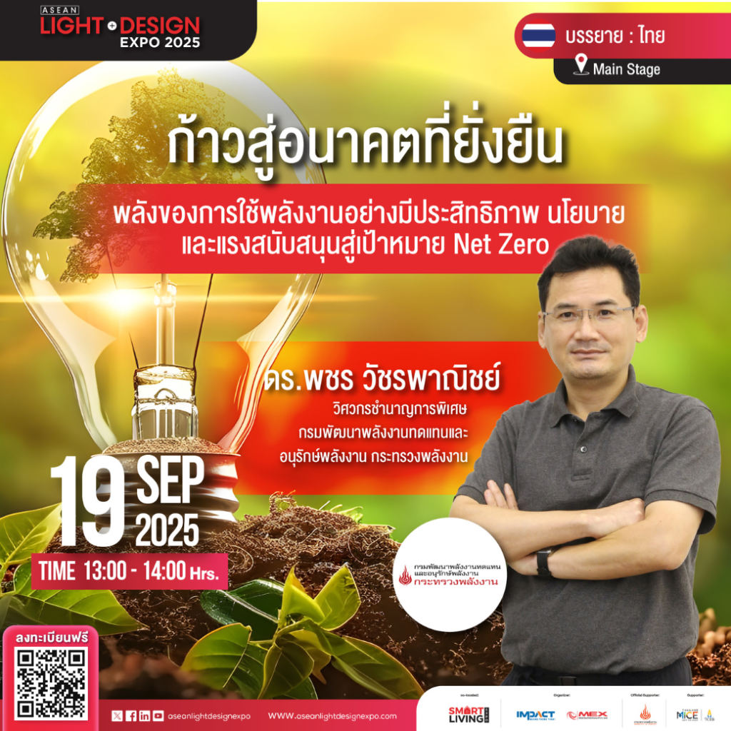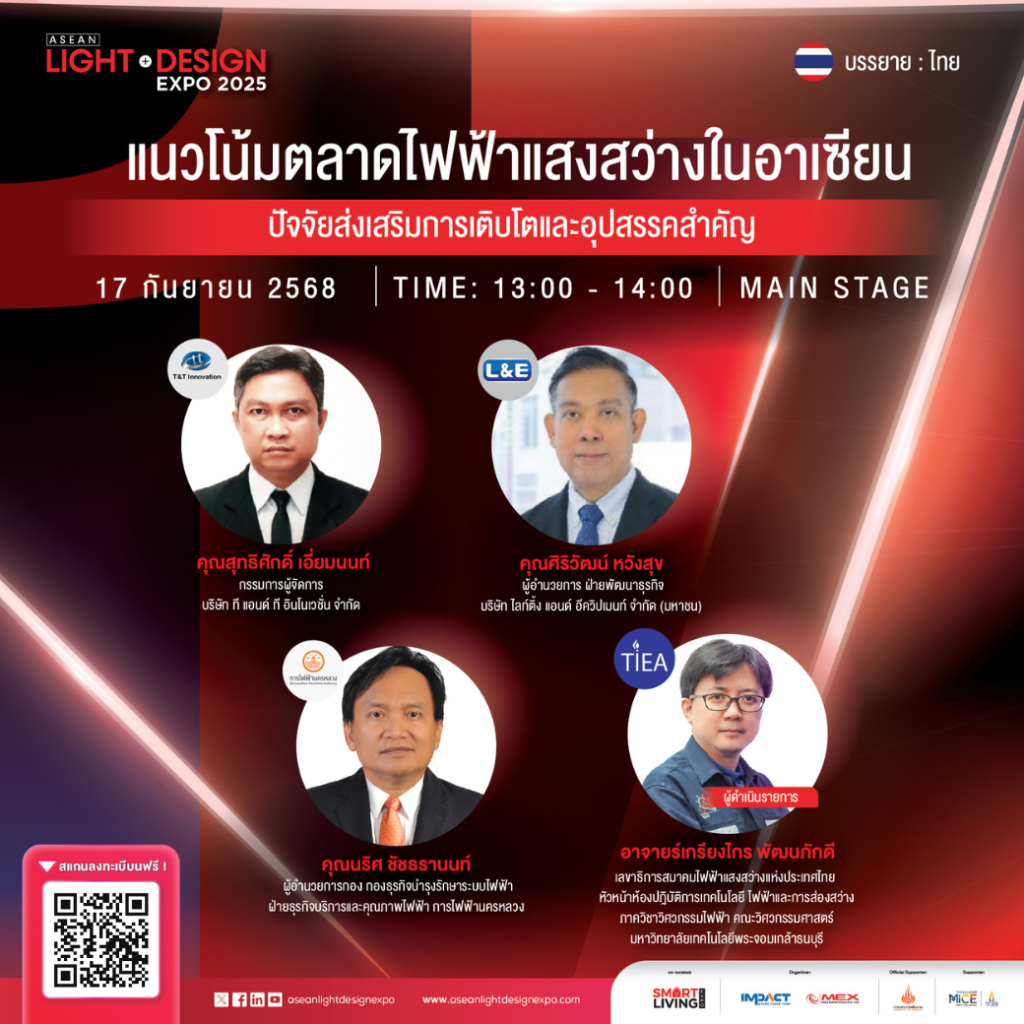 13:00 – 14:00 : แนวโน้มตลาดไฟฟ้าแสงสว่างในอาเซียน ปัจจัยส่งเสริมการเติบโตและอุปสรรคสำคัญ