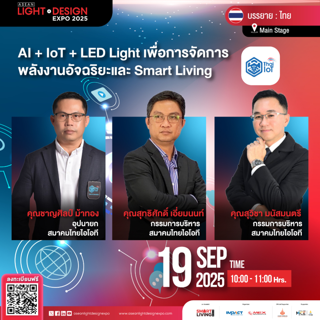 10:00 – 11:00 : AI + IoT + LED Light เพื่อการจัดการพลังงานอัจฉริยะและ Smart Living
