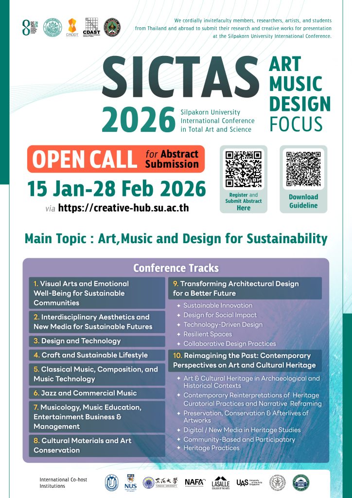 SICTAS 2026 : Art x Music x Design Focus : Silpakorn University International Conference in Total Art and Science