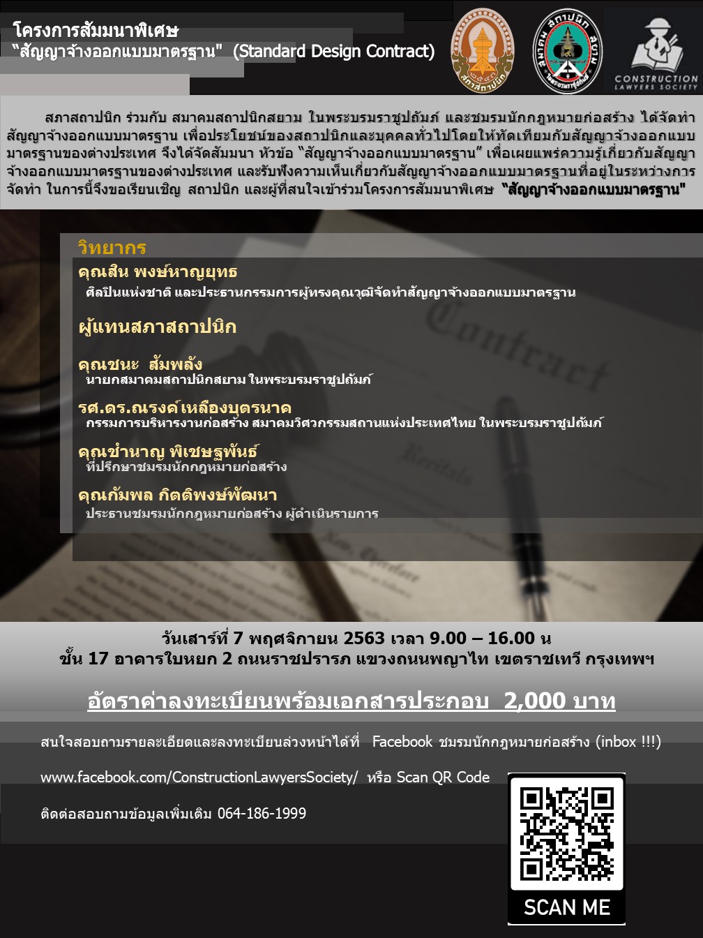 7 พ.ย. 63 | โครงการสัมมนาพิเศษ “สัญญาจ้างออกแบบมาตรฐาน” (Standard Design Contract)