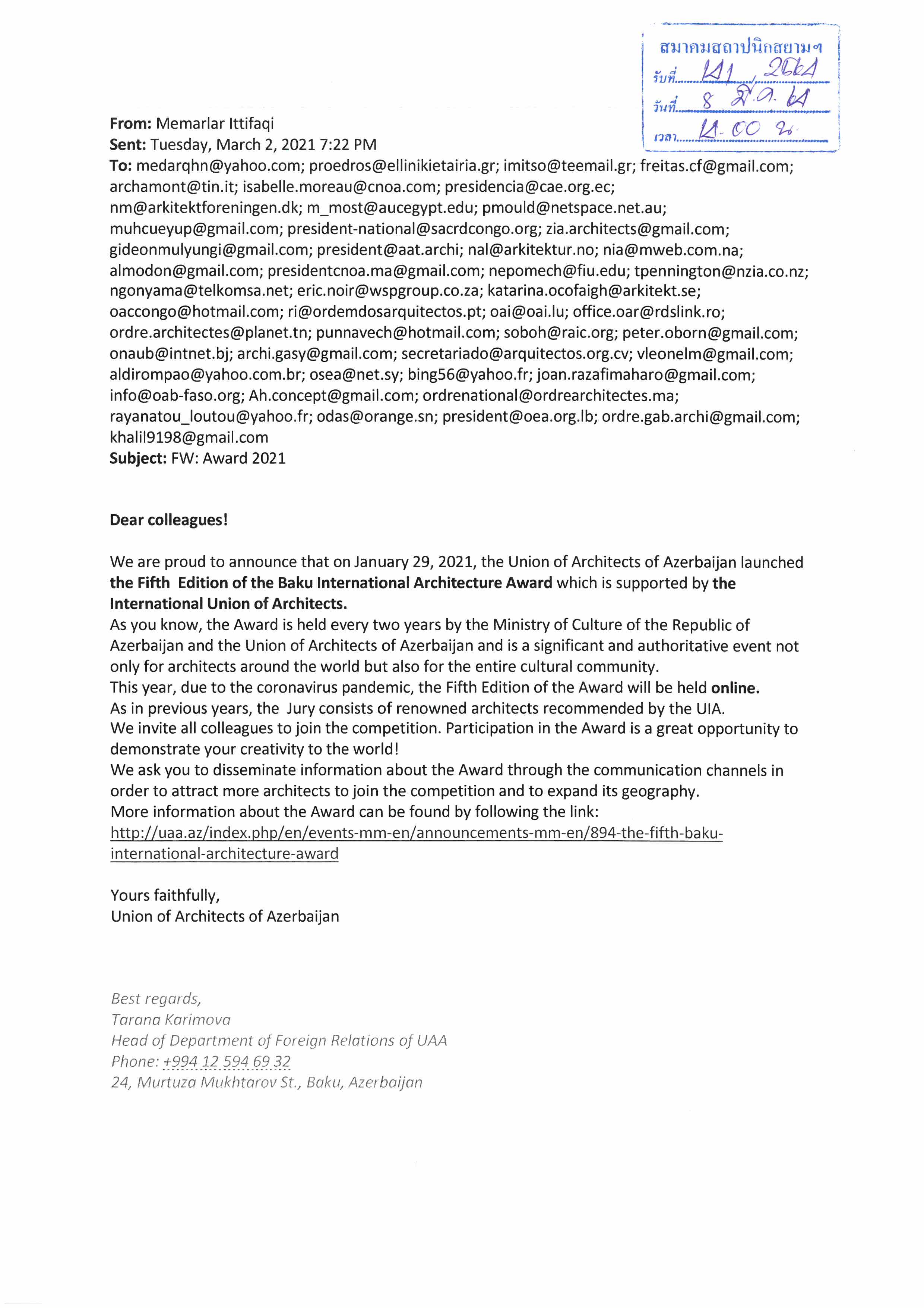 ประกวดโครงการ The Fifth Edition of the Baku International Architecture Award