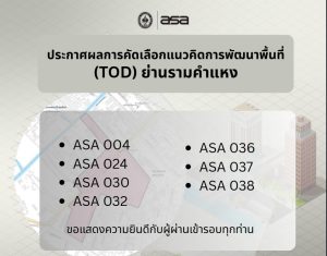 ประกาศผลการคัดเลือกแนวคิดการพัฒนาพื้นที่ ( TOD ) ย่านรามคำแหง