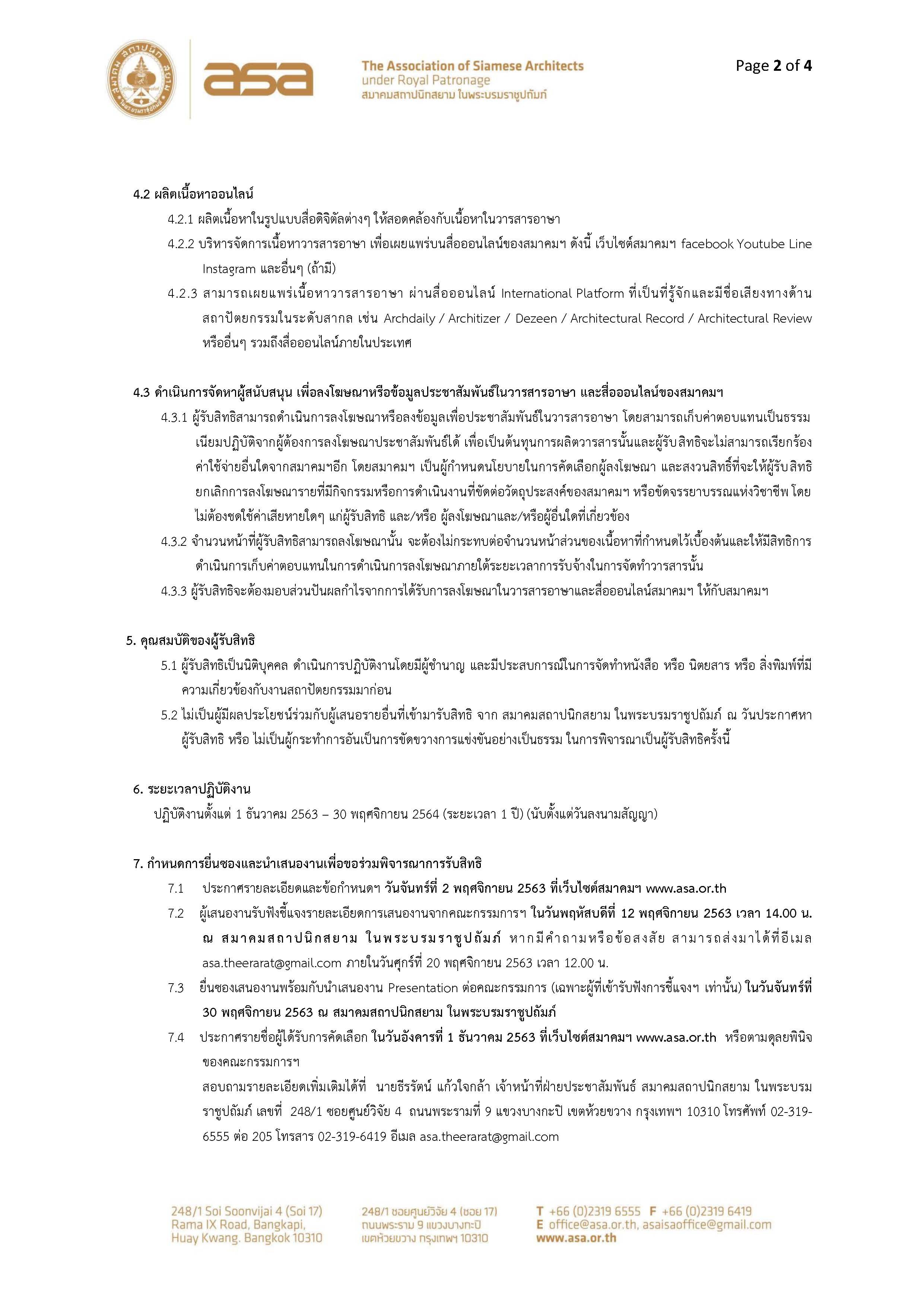 ประกาศจัดหาผู้รับสิทธิการจัดทำวารสารอาษา และ ผลิตเนื้อหา บริหารจัดการสื่อออนไลน์ สมาคมสถาปนิกสยาม ในพระบรมราชูปถัมภ์