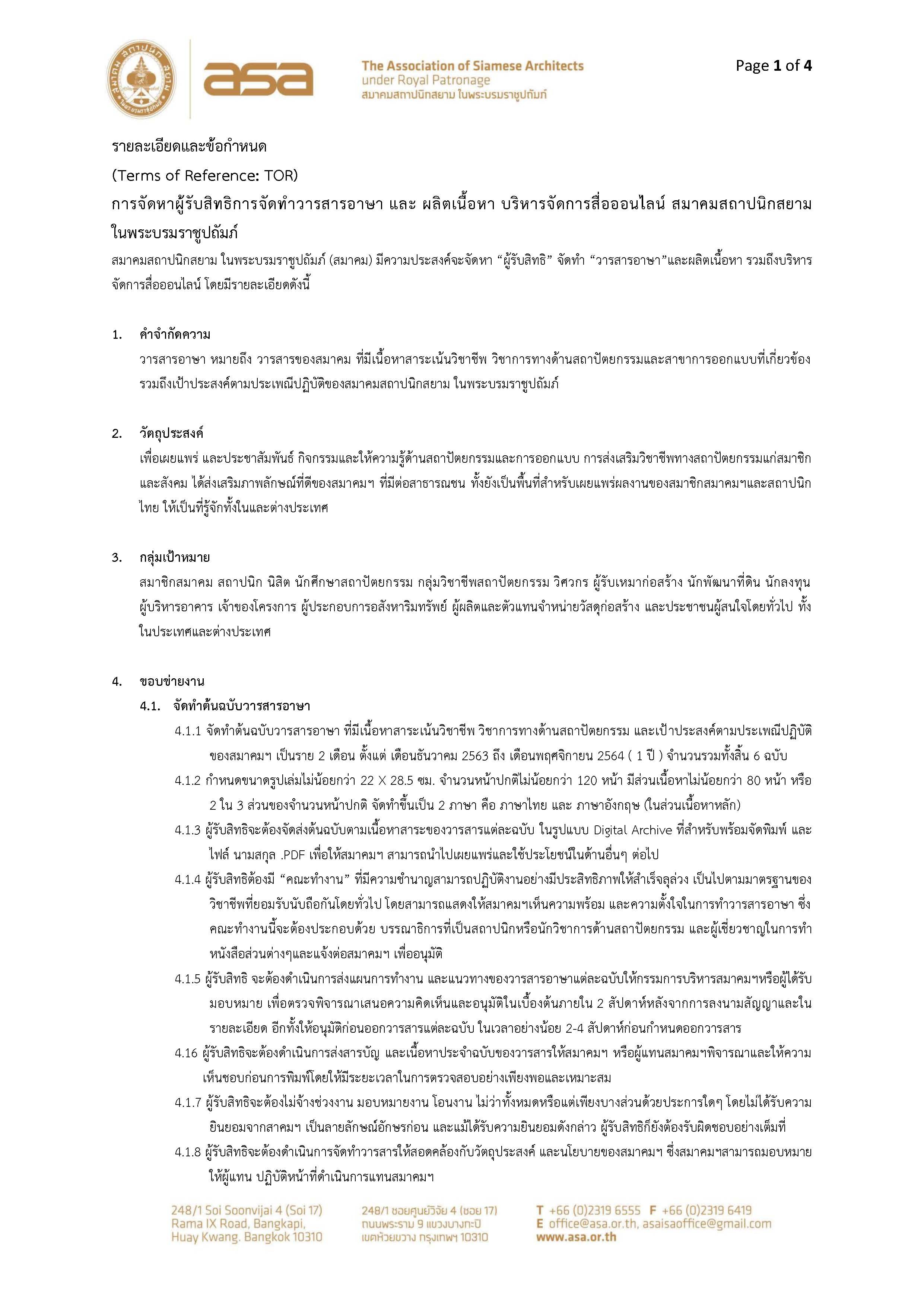 ประกาศจัดหาผู้รับสิทธิการจัดทำวารสารอาษา และ ผลิตเนื้อหา บริหารจัดการสื่อออนไลน์ สมาคมสถาปนิกสยาม ในพระบรมราชูปถัมภ์
