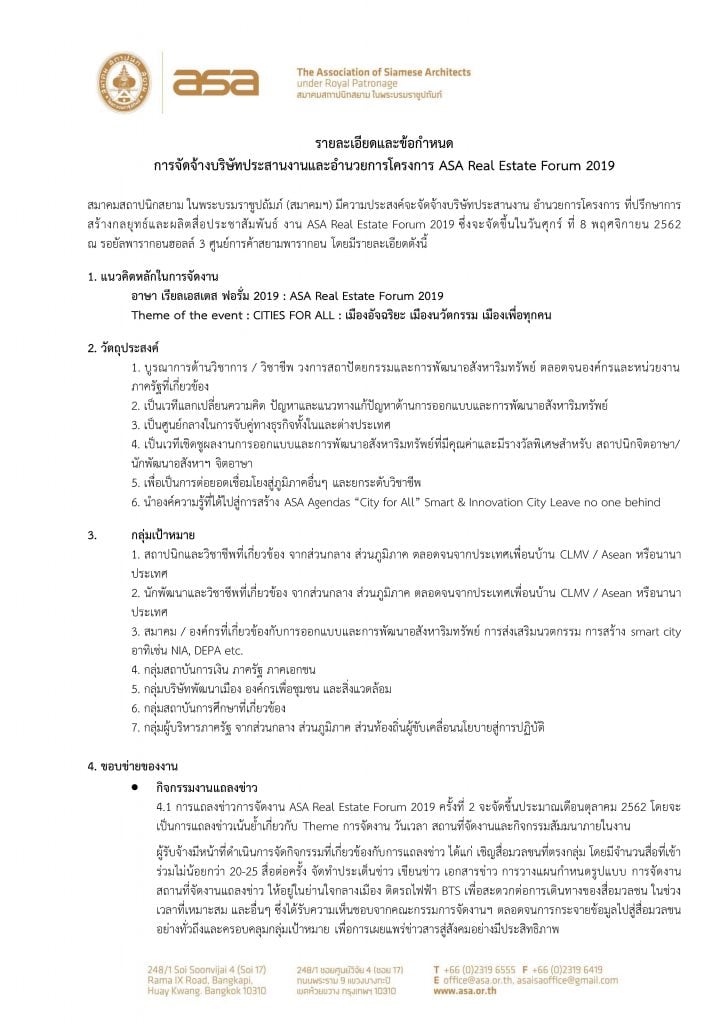 Home » News » ประกาศจัดจ้างบริษัทประสานงานและอำนวยการโครงการ ASA Real Estate Forum 2019
